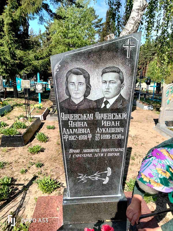 Dziadek Adam pracował na budowie «Linii Stalina» (system rejonów umocnionych – red.), która na naszych terenach ciągnęła się od Zwiahla do Korostenia. Był kierownikiem budowy. W 1937 r. zamordowały go władze sowieckie. Zabrano go prosto z domu. Później przyszedł papier, że zmarł z powodu marskości wątroby na Biełomorkanale. Czy tak było naprawdę, już nikt nie wie. Z kolei babcię Stasię z dwoma niepełnoletnimi synami wysiedlono do obwodu charkowskiego, do dawnego rejonu błyzniukiwskiego. Babcia opowiadała, że kiedy tam przyjechali, w chatach jeszcze leżały szczątki ludzi zmarłych podczas Wielkiego Głodu. Przywieziono ich do jakiejś chaty i powiedziano: „Tu będziecie mieszkać”. Rozdzielono ich po dwie rodziny: po dwie kobiety z dziećmi.