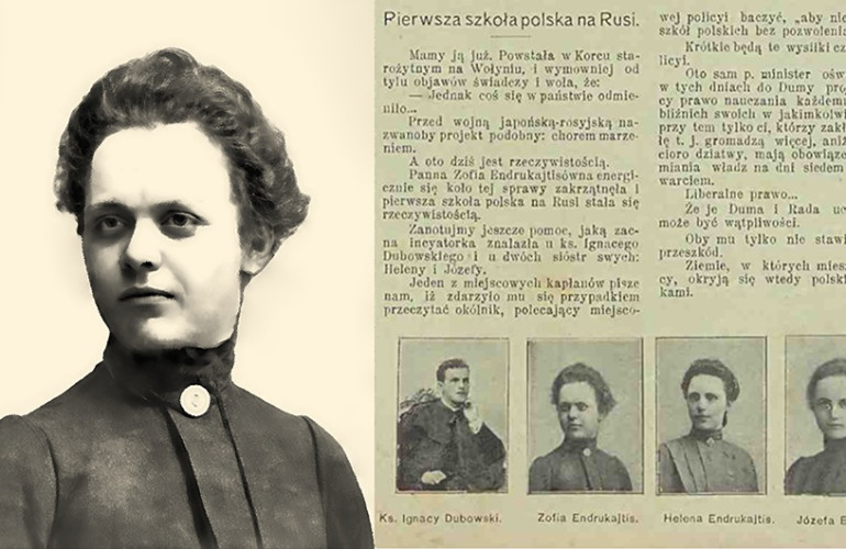 Otrzymawszy spadek po wuju, Maria Endrukajtis kupiła posiadłość w Korcu w guberni wołyńskiej. To właśnie w tym mieście ujawnił się talent Zofii jako działaczki oświatowej, zwolenniczki Cecylii Zyberkówny.