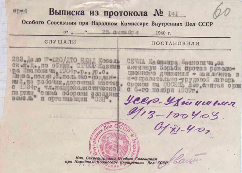 Ze sprawami karnymi osób represjonowanych przez władze sowieckie można zapoznać się na stronie Państwowego Archiwum Obwodu Wołyńskiego.