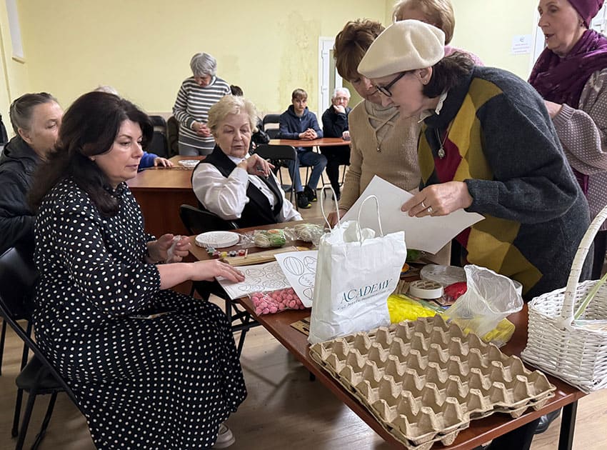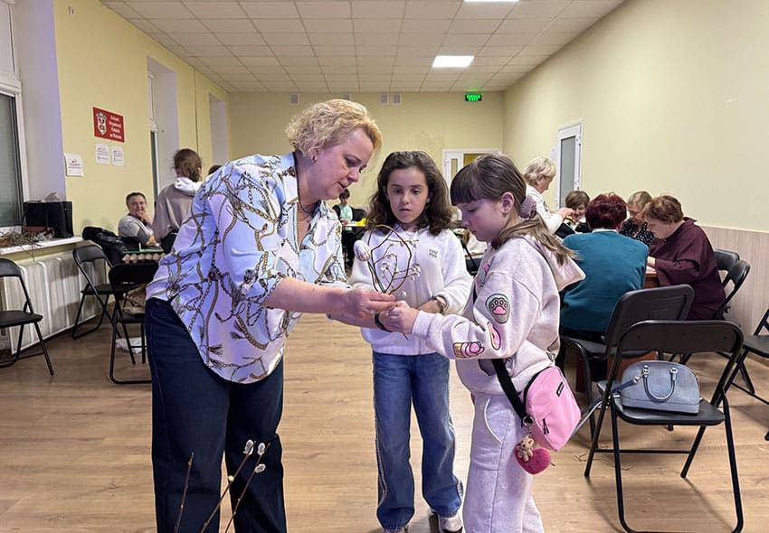 Wraz z Oksaną Tarasiuk i Iryną Kosenko, nauczycielkami szkoły sobotnio-niedzielnej, poprowadziła warsztaty, opowiadając, jakie ozdoby można stworzyć, pokazując wzorce dekoracji wielkanocnych i wyjaśniając główne etapy ich tworzenia.