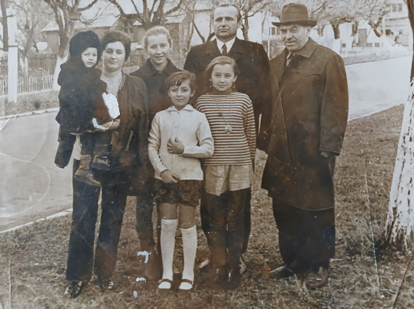 Справа наліво: дід Степан, тато Іван, сестра Людмила, тітка Леокадія, двоюрідний брат Олександр. У другому ряді – Іванна Матюшик (вища) та її двоюрідна сестра Алла